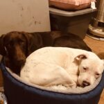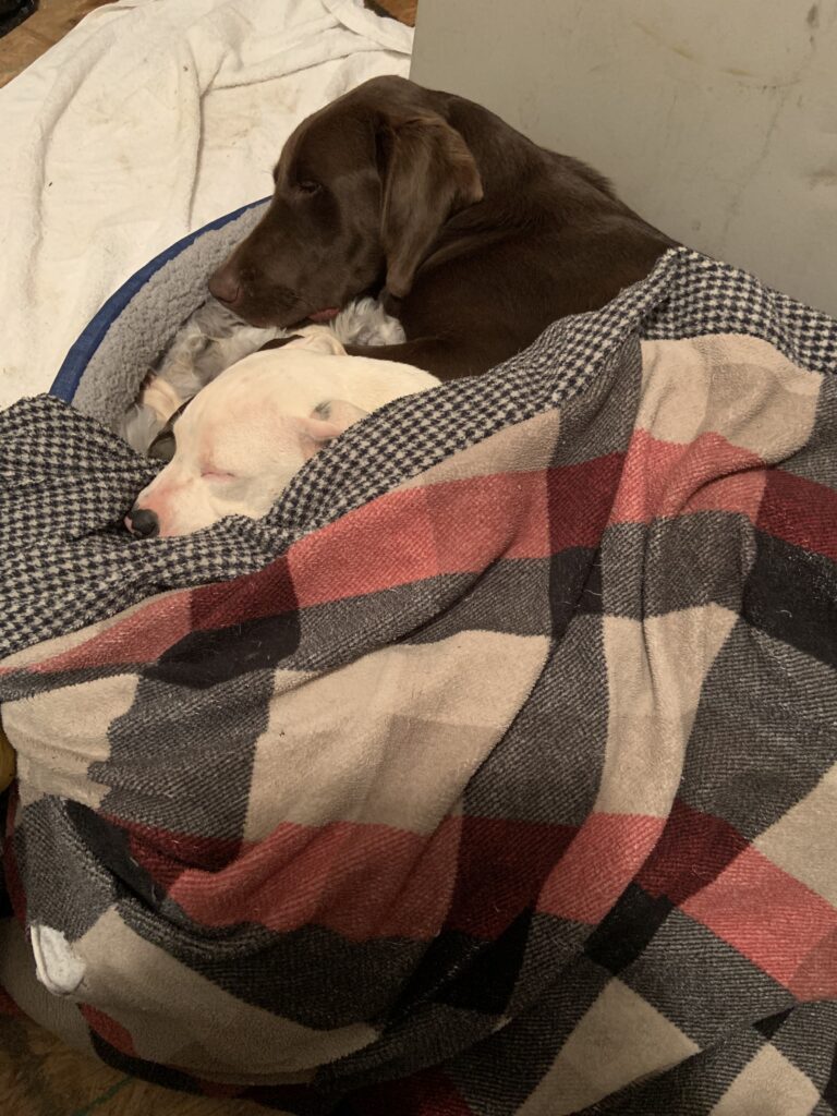 Hi. Someone dumped two pups on a very busy street by my house. They are both under a year i believe, one looks to be a redbone coonhound and the other a very very young pitty. The coonhound is red and is still growing into his legs, gangly, goofy. The pitty is white, extremely sweet, and docile. You can tell they came from the same home as they are very attached to one another. Our fence isn’t reinforced and they aren’t safe here. Can you please help? Please?