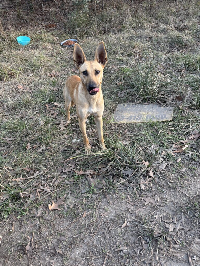 Shepherd mix, less than a year old. Living in the woods. I can provide food, vaccinate, fix and provide Heartworm prevention and flea medication. Will make a $500 donation.