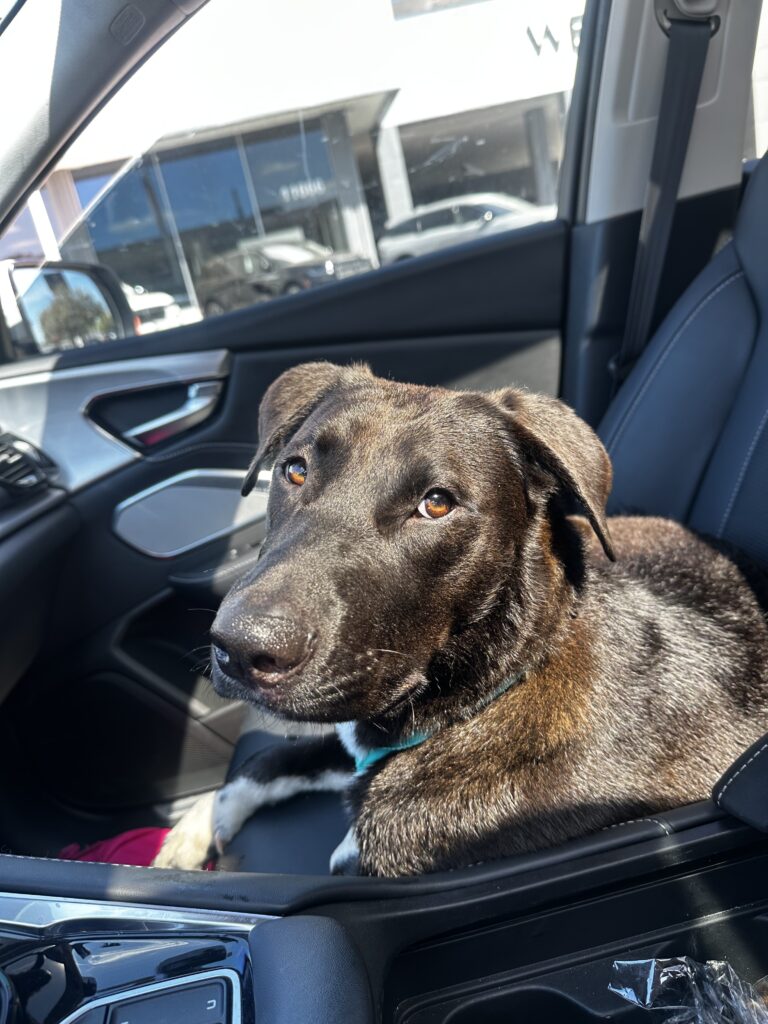 Found this sweet dog near Highway 6 & Westheimer today (March 19th)— he was about to run into traffic so I picked him up. I took him to the vet and he doesn’t have a microchip.