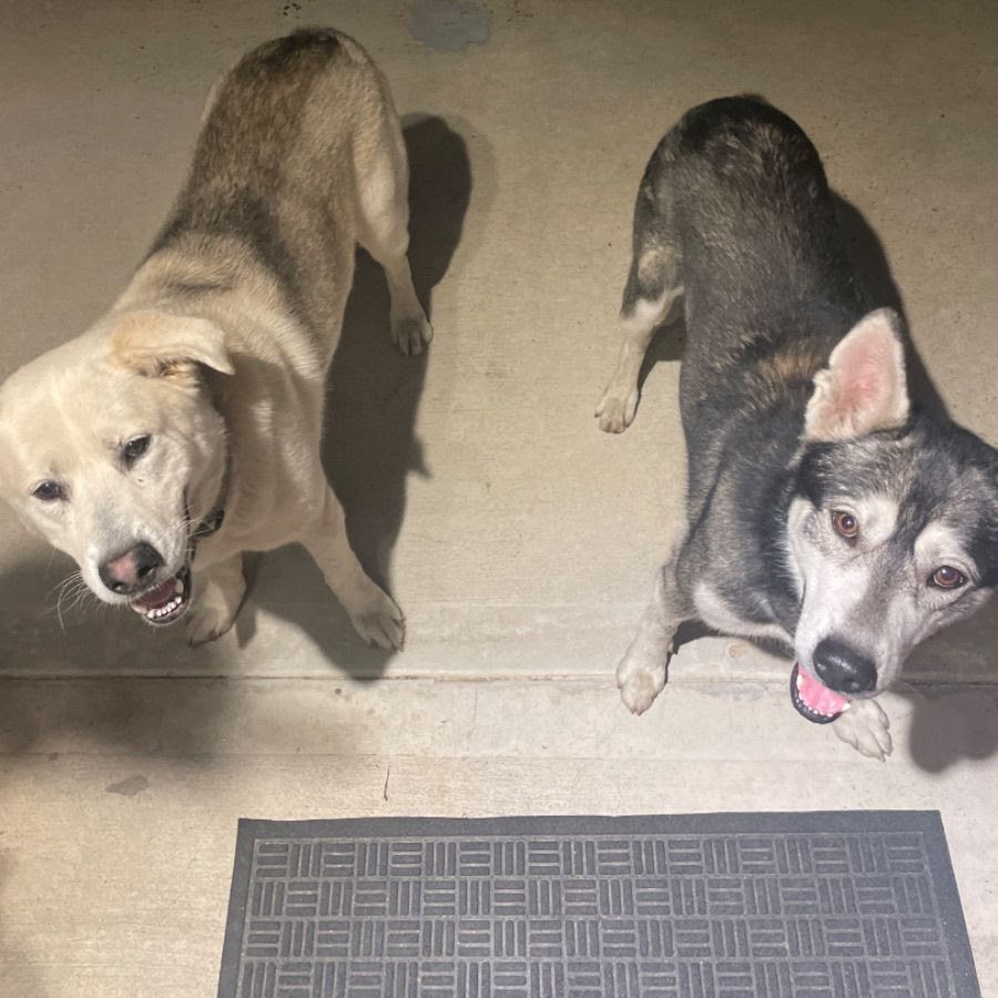 Found white dog in East End at Ennis and Commerce Street. Walking with other white and black dog (husky or german shepherd mix)