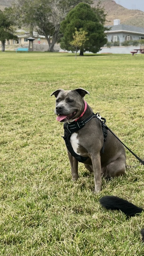 She’s very friendly. She ran off on 3/13/26 from our backyard. She has an odd sway in her hips/hind legs when she walks. We believe she went down Goodson creek but cannot find her. We found her brother dog in wood trace. She does not have a collar on we found it and the air tag in the forest when she ran off the time before.
