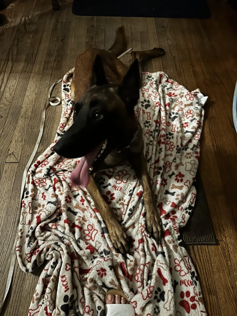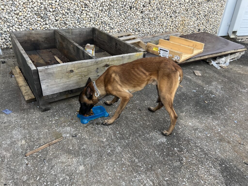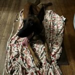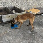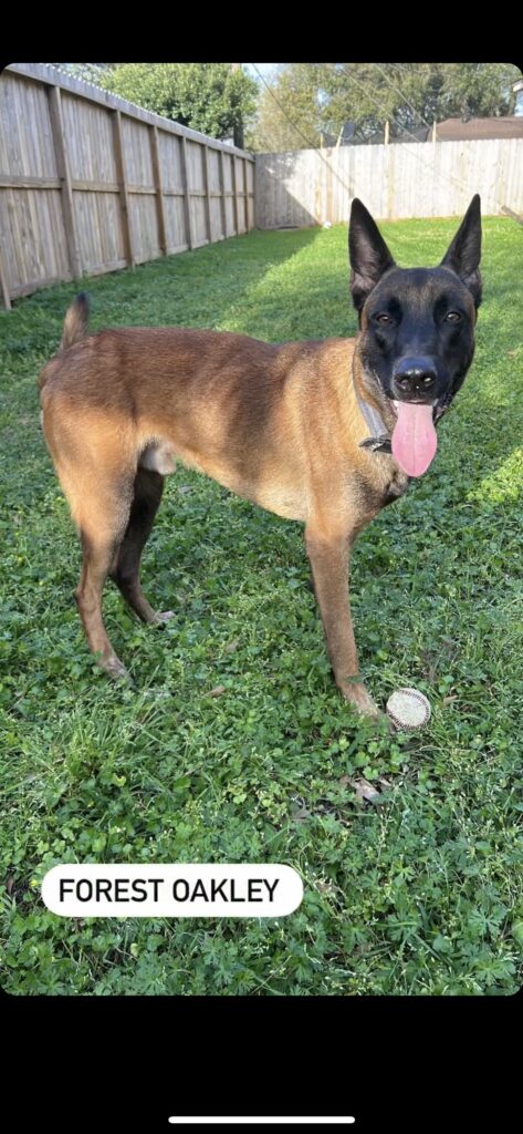 He is a young malinois, brown body black face. Neighbors believed he was dumped. He was wearing a lunch collar when we picked him up in southeast Houston. We checked for a chip but he doesn’t have one.