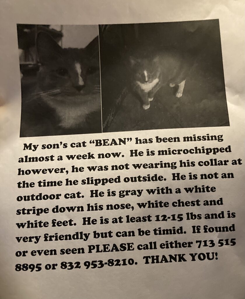 Gray male white stripe down nose white feet white tummy. Missing since 11-4-22. He is microchipped.