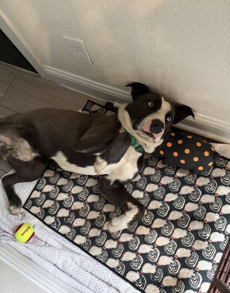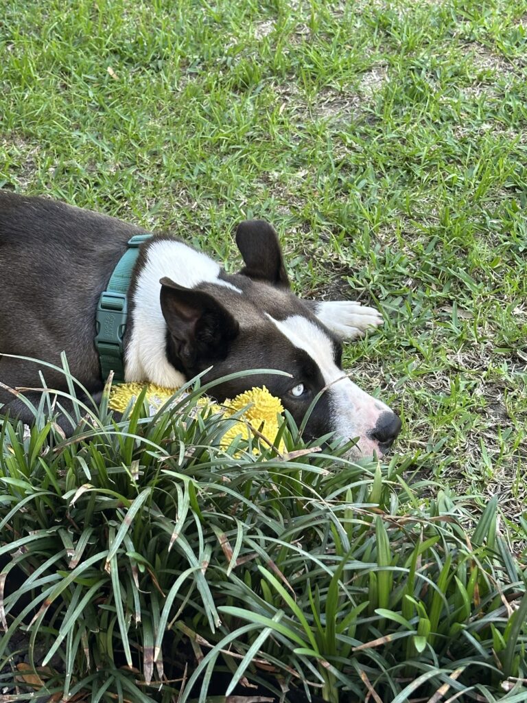 Husky Bulldog mix male 2yr old, well mannered and socialized with other dogs, no chip, gave him vaccines and was neutered, too big for us (already have 3 dogs) so can only foster for a month