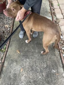 Male pit bull about 1 year old, no chip, intact, rambunctious. Not aggressive. Can’t keep for long.