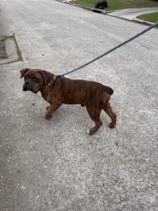 Husky Bulldog mix male 2yr old, well mannered and socialized with other dogs, no chip, gave him vaccines and was neutered, too big for us...