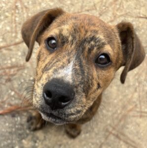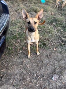 Female puppy found wandering the streets in downtown Tomball; begging for food. She seems to be in the Hound family. 20 pounds; maybe 3 months...