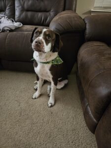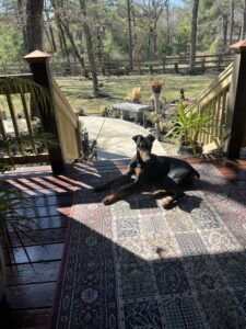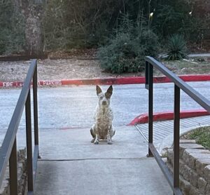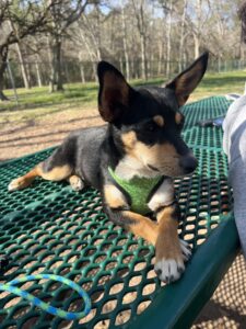 Found this pup on side of road in Huntsville Tx, near east Thompson park. She almost got hit by a car. She has done well...